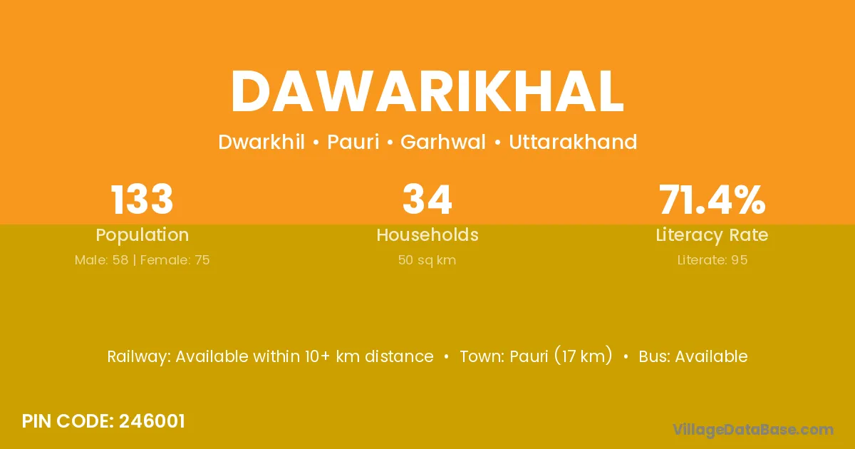 Pauri (17 km) is the nearest town to Dawarikhal village for major economic activities and is located approximately 17 km away.