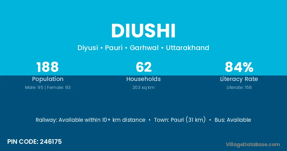 Pauri (31 km) is the nearest town to Diushi village for major economic activities and is located approximately 31 km away.