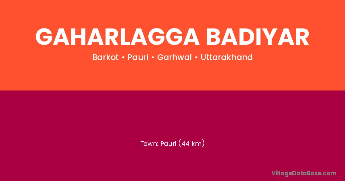 Pauri (44 km) is the nearest town to Gaharlagga Badiyar village for major economic activities and is located approximately 44 km away.