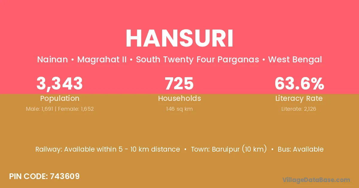The literacy rate of Hansuri village is 74.83%. Male literacy stands at 80.82% and female literacy at 68.57%.