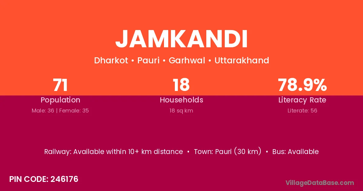 Pauri (30 km) is the nearest town to Jamkandi village for major economic activities and is located approximately 30 km away.