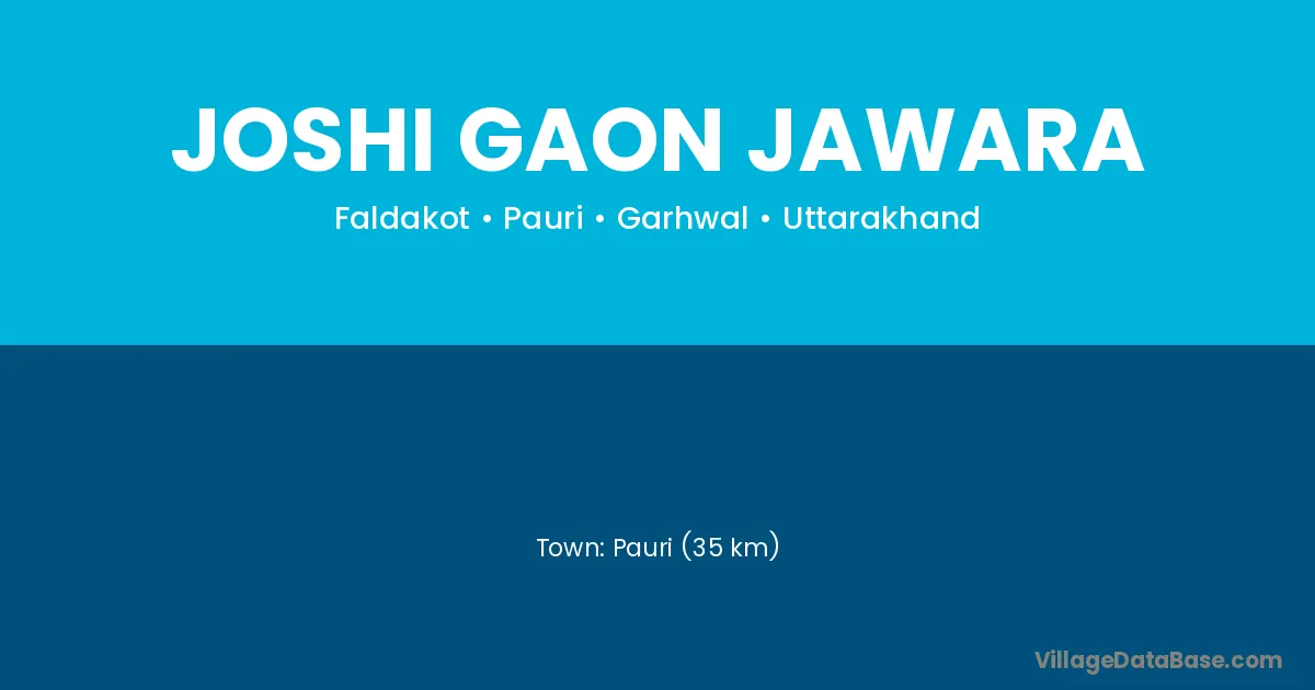 Pauri (35 km) is the nearest town to Joshi Gaon Jawara village for major economic activities and is located approximately 35 km away.