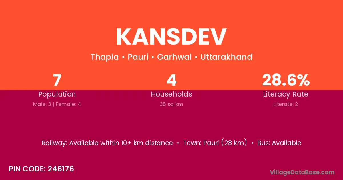 Pauri (28 km) is the nearest town to Kansdev village for major economic activities and is located approximately 28 km away.