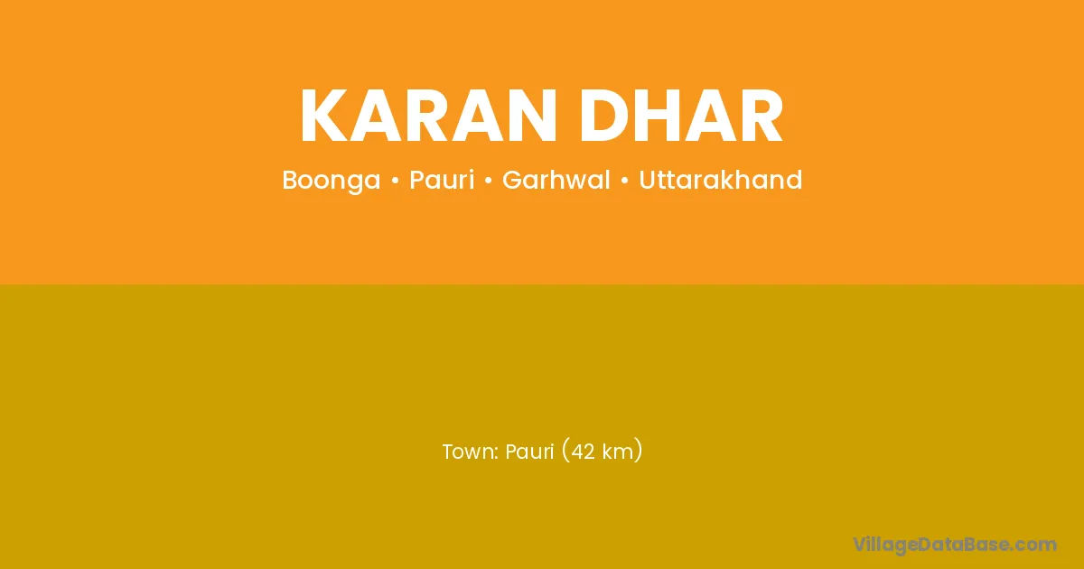 Pauri (42 km) is the nearest town to Karan Dhar village for major economic activities and is located approximately 42 km away.