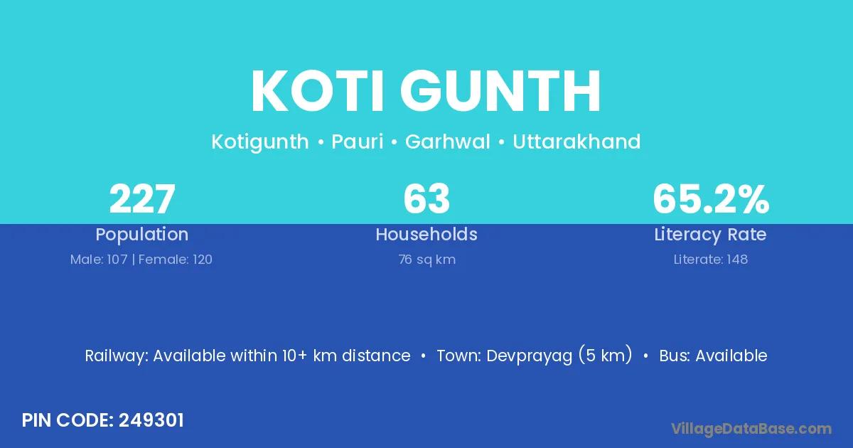 Koti Gunth village has a total population of 227 people, of which 107 are males and 120 are females.