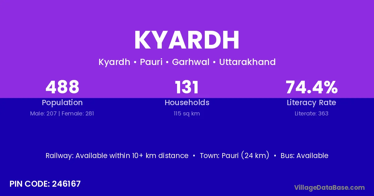 According to Census 2011 information, the village code of Kyardh village is 246167.