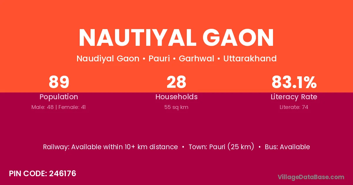 Pauri (25 km) is the nearest town to Nautiyal Gaon village for major economic activities and is located approximately 25 km away.