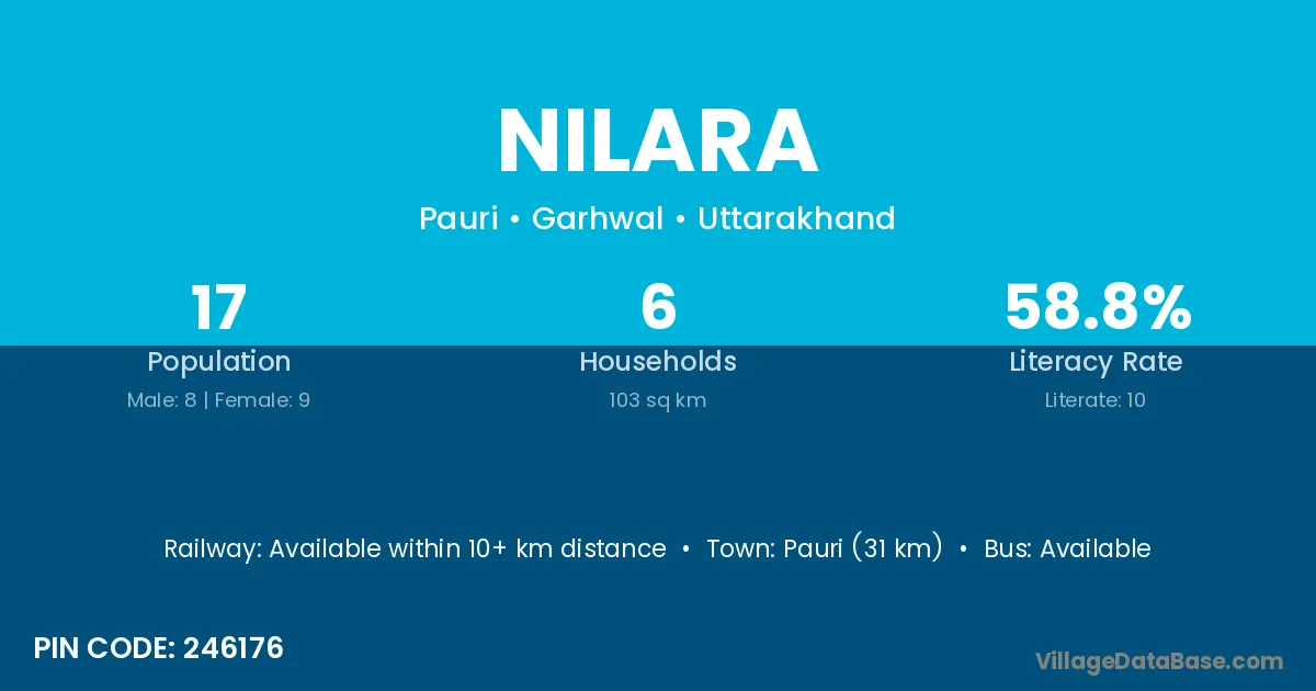 Pauri (31 km) is the nearest town to Nilara village for major economic activities and is located approximately 31 km away.