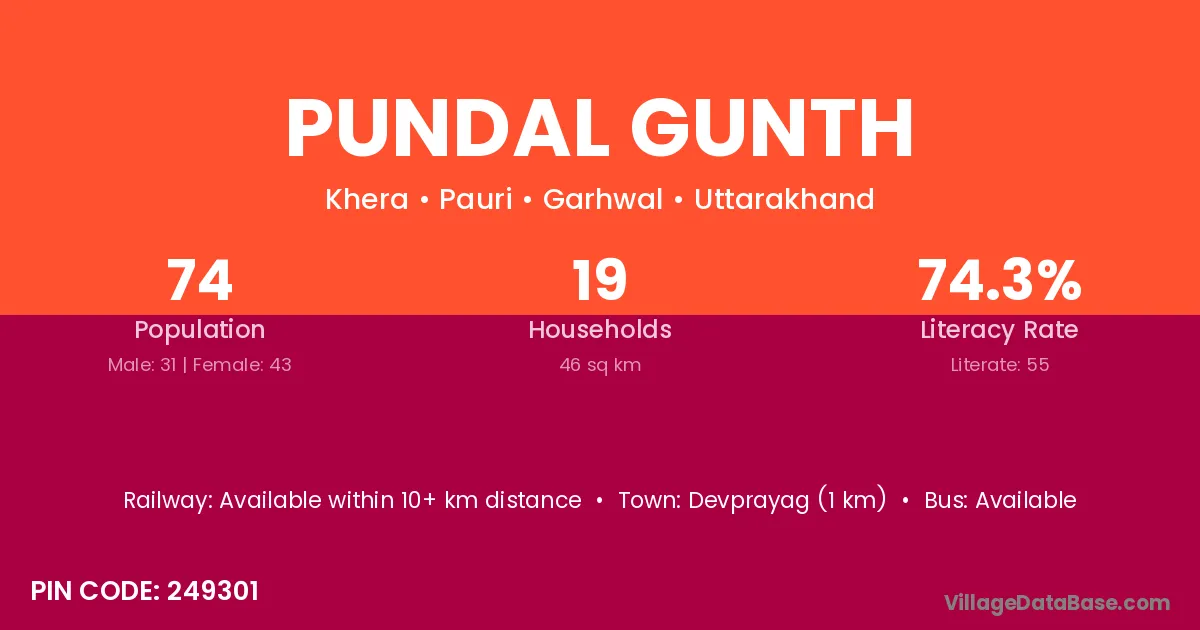 Devprayag (1 km) is the nearest town to Pundal Gunth village for major economic activities and is located approximately 1 km away.