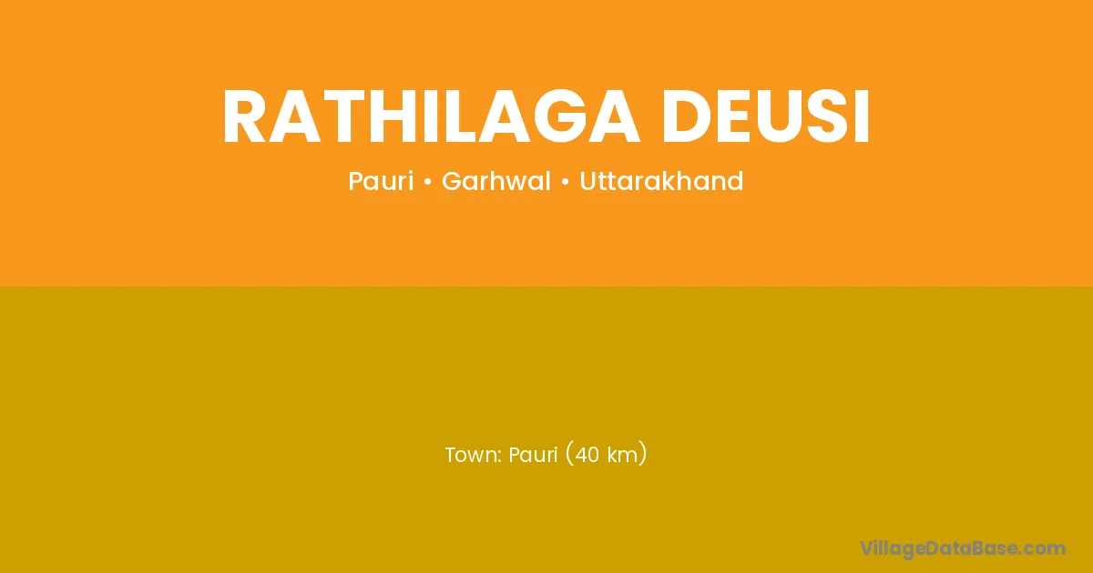 Pauri (40 km) is the nearest town to Rathilaga Deusi village for major economic activities and is located approximately 40 km away.