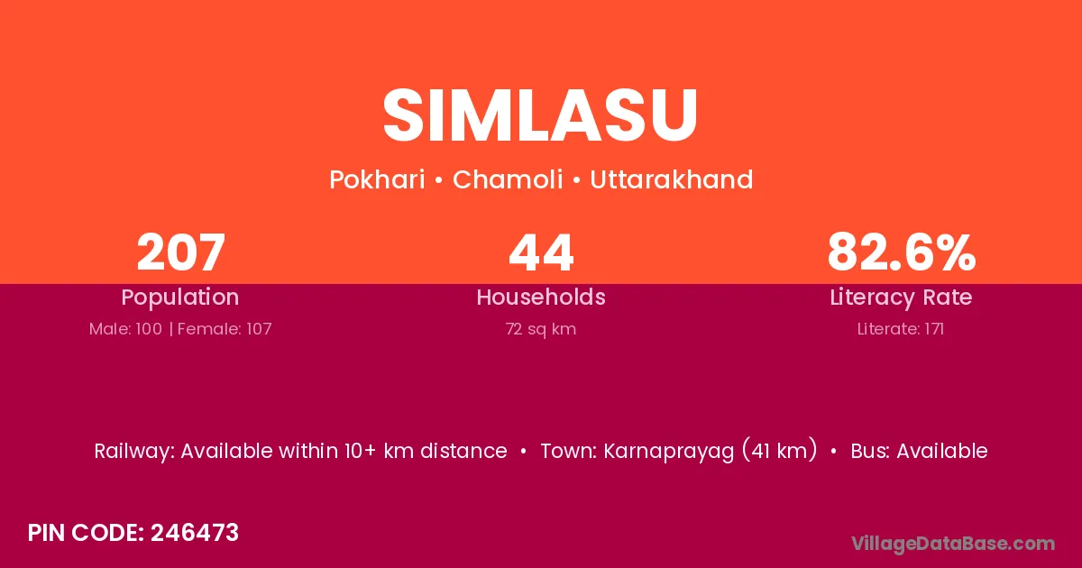 Pauri (33 km) is the nearest town to Simlasu village for major economic activities and is located approximately 33 km away.