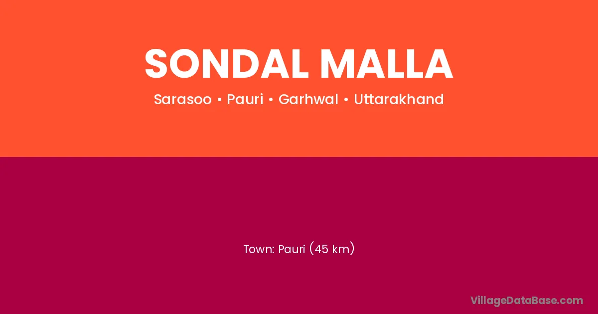 Pauri (45 km) is the nearest town to Sondal Malla village for major economic activities and is located approximately 45 km away.