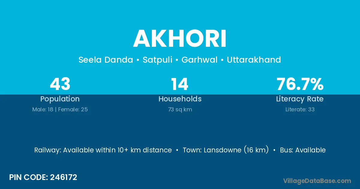 Lansdowne (16 km) is the nearest town to Akhori village for major economic activities and is located approximately 16 km away.