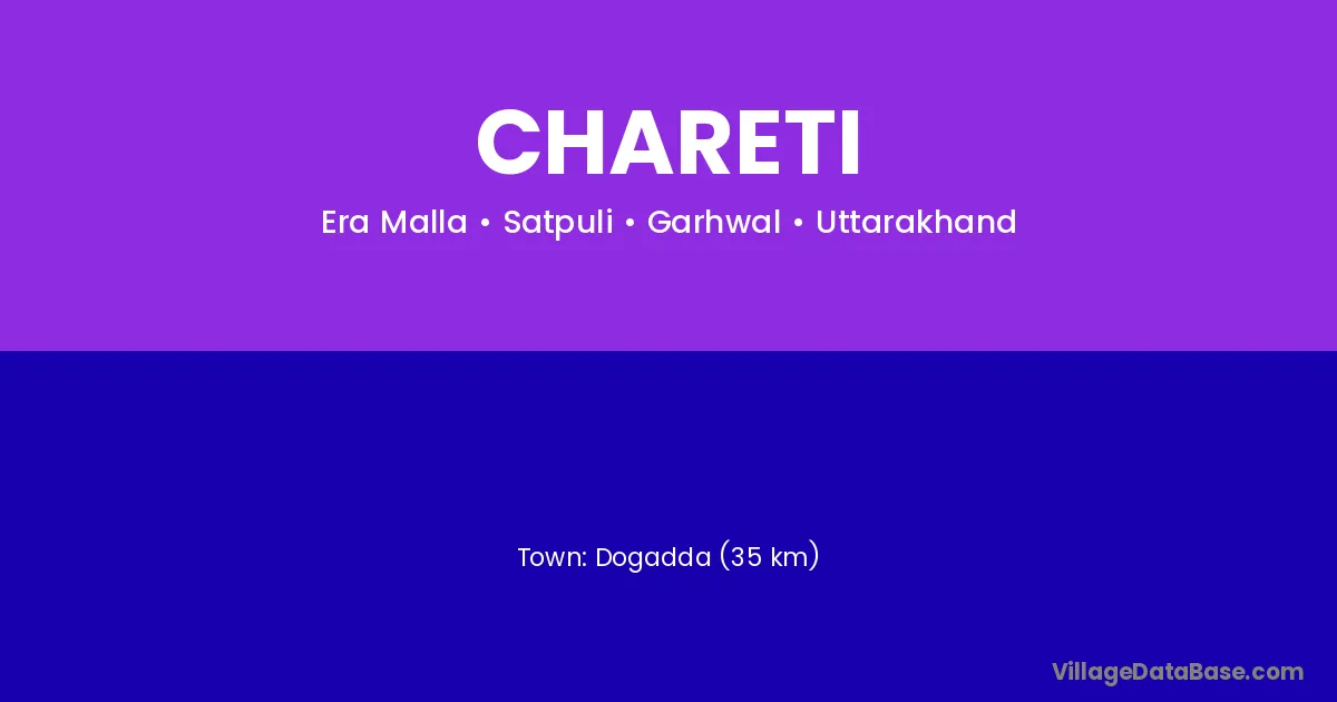 Dogadda (35 km) is the nearest town to Chareti village for major economic activities and is located approximately 35 km away.