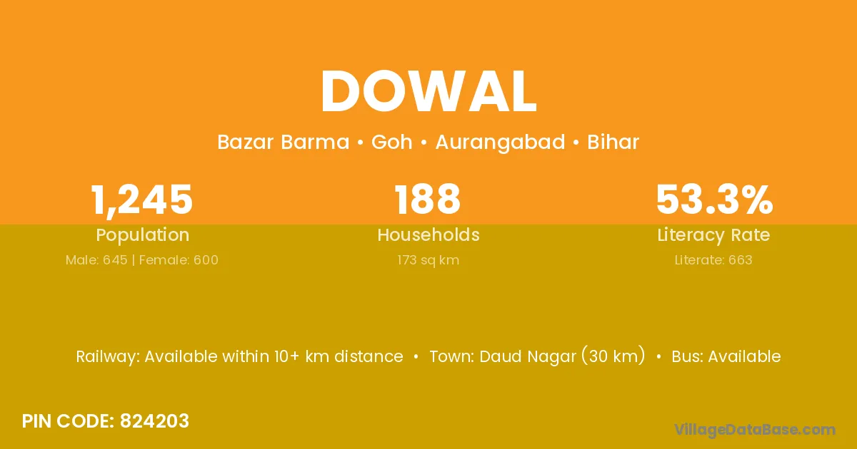 According to Census 2011 information, the village code of Dowal village is 248131.