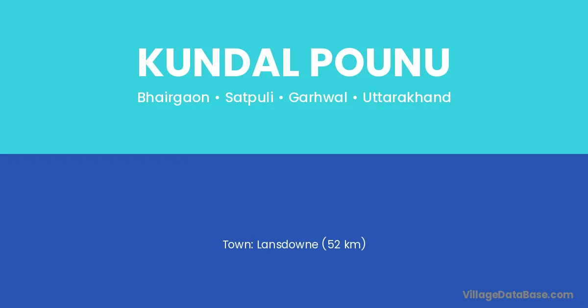 Lansdowne (52 km) is the nearest town to Kundal Pounu village for major economic activities and is located approximately 52 km away.