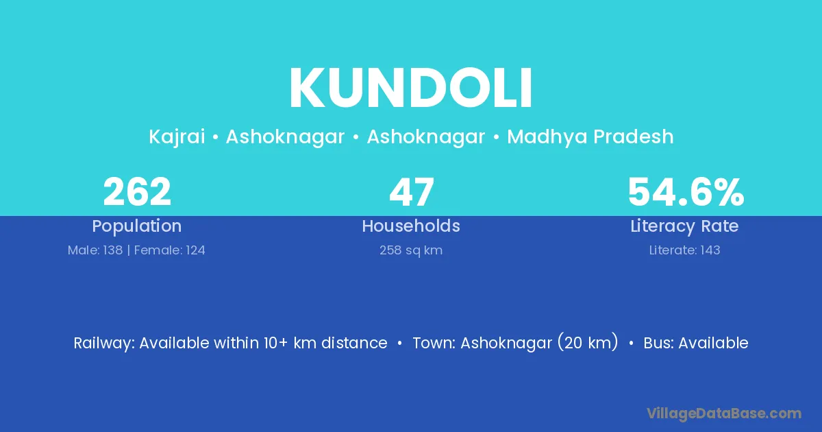 Dogadda (60 km) is the nearest town to Kundoli village for major economic activities and is located approximately 60 km away.