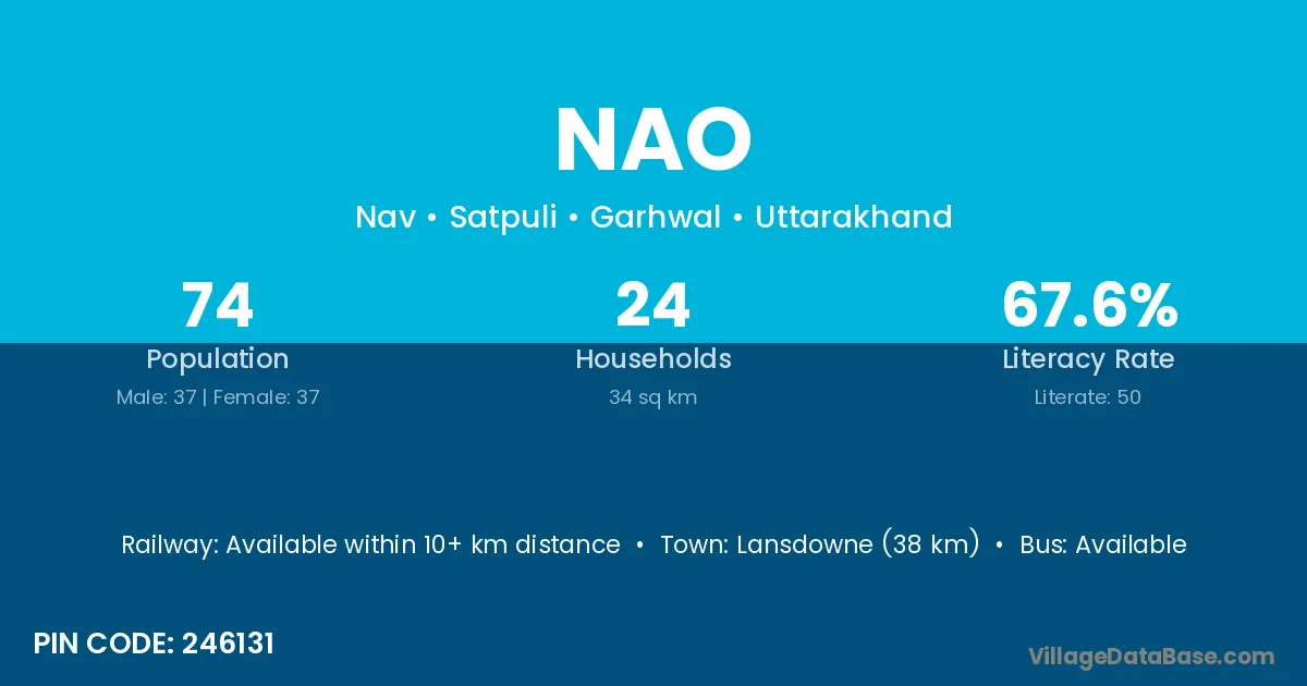 Lansdowne (38 km) is the nearest town to Nao village for major economic activities and is located approximately 38 km away.