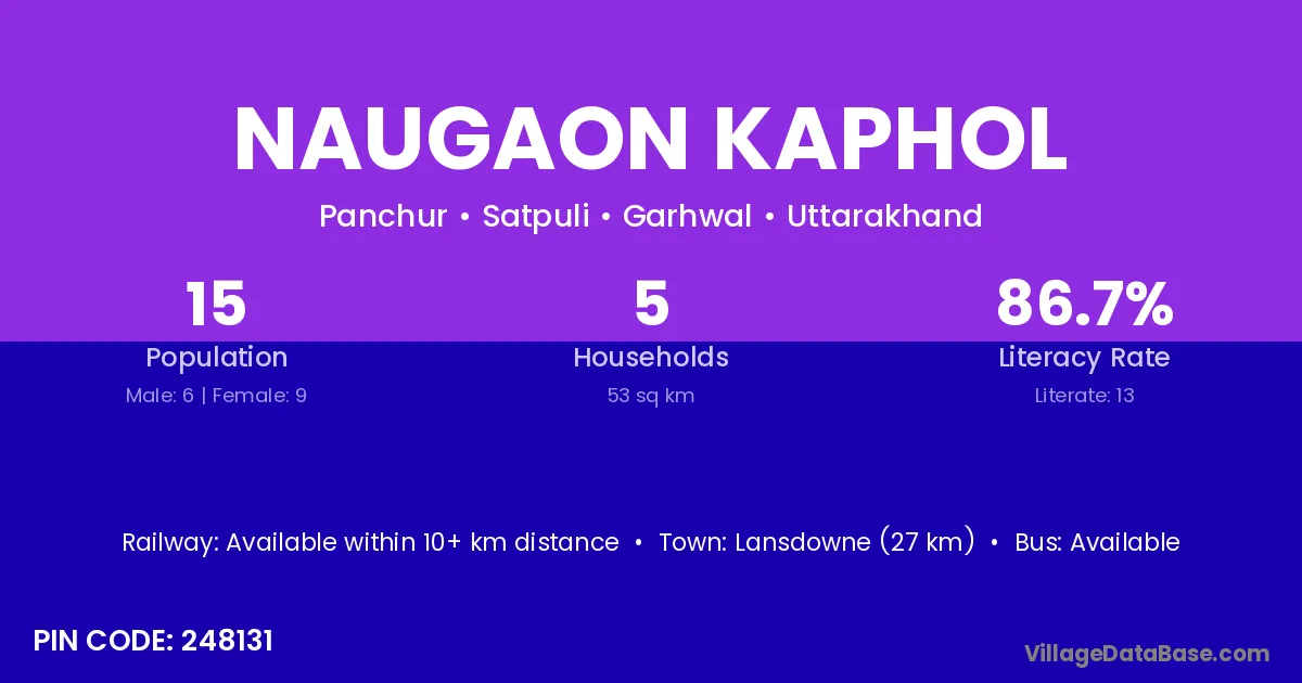 Lansdowne (27 km) is the nearest town to Naugaon Kaphol village for major economic activities and is located approximately 27 km away.