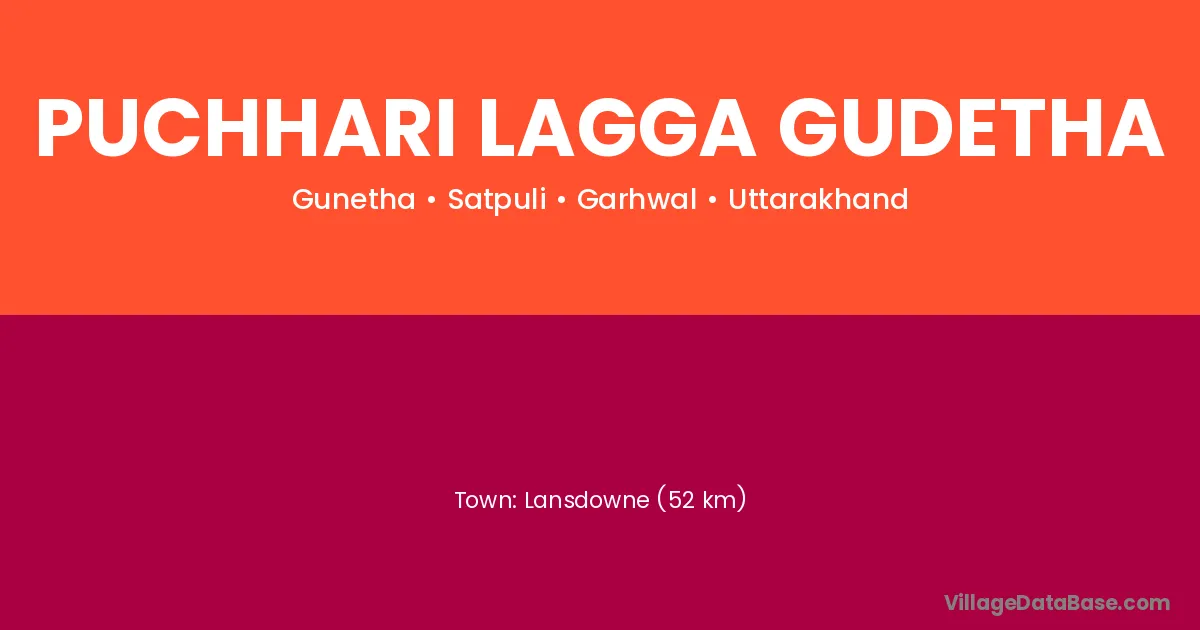 Lansdowne (52 km) is the nearest town to Puchhari Lagga Gudetha village for major economic activities and is located approximately 52 km away.