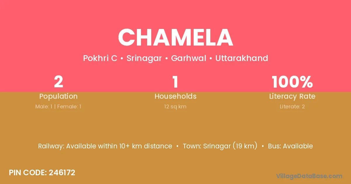 Srinagar (19 km) is the nearest town to Chamela village for major economic activities and is located approximately 19 km away.