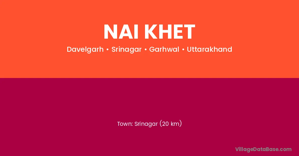 Srinagar (20 km) is the nearest town to Nai Khet village for major economic activities and is located approximately 20 km away.