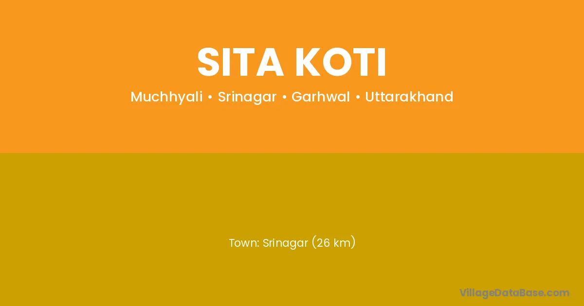 Srinagar (26 km) is the nearest town to Sita Koti village for major economic activities and is located approximately 26 km away.