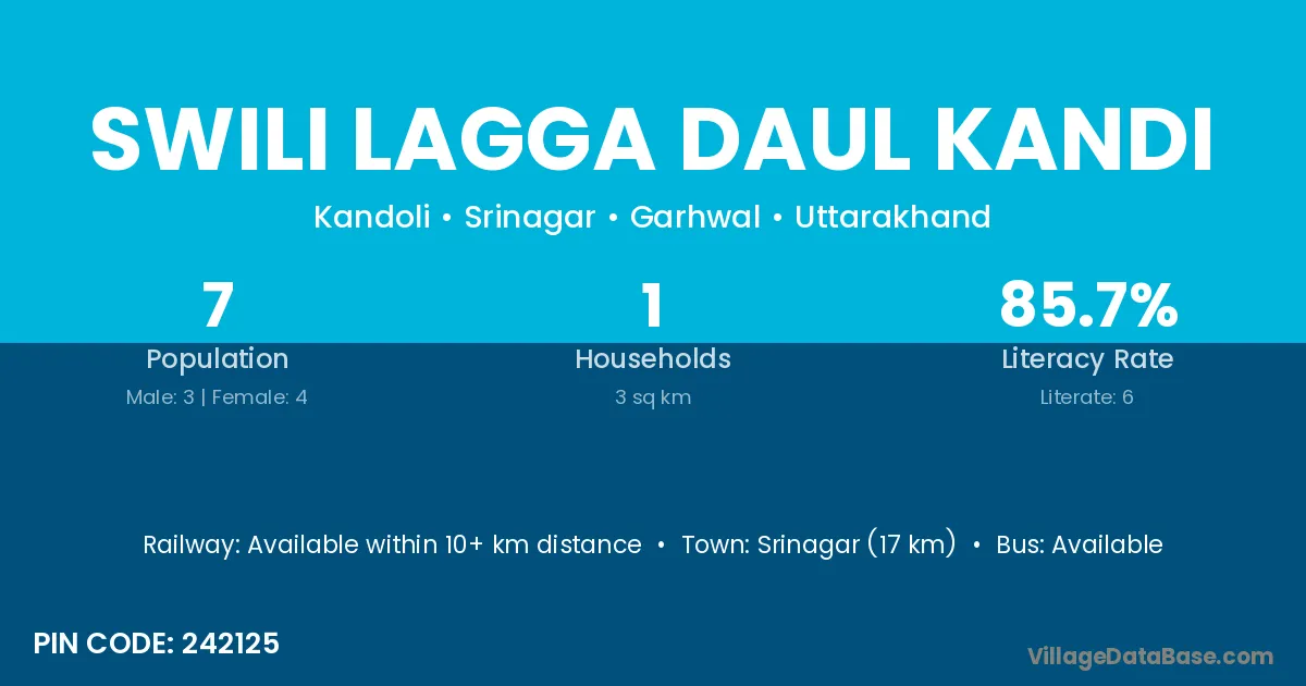 According to Census 2011 information, the village code of Swili Lagga Daul Kandi village is 242125.