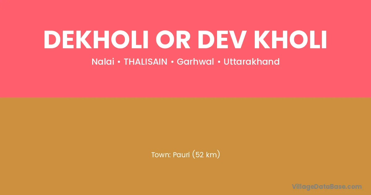 Pauri (52 km) is the nearest town to Dekholi Or Dev Kholi village for major economic activities and is located approximately 52 km away.