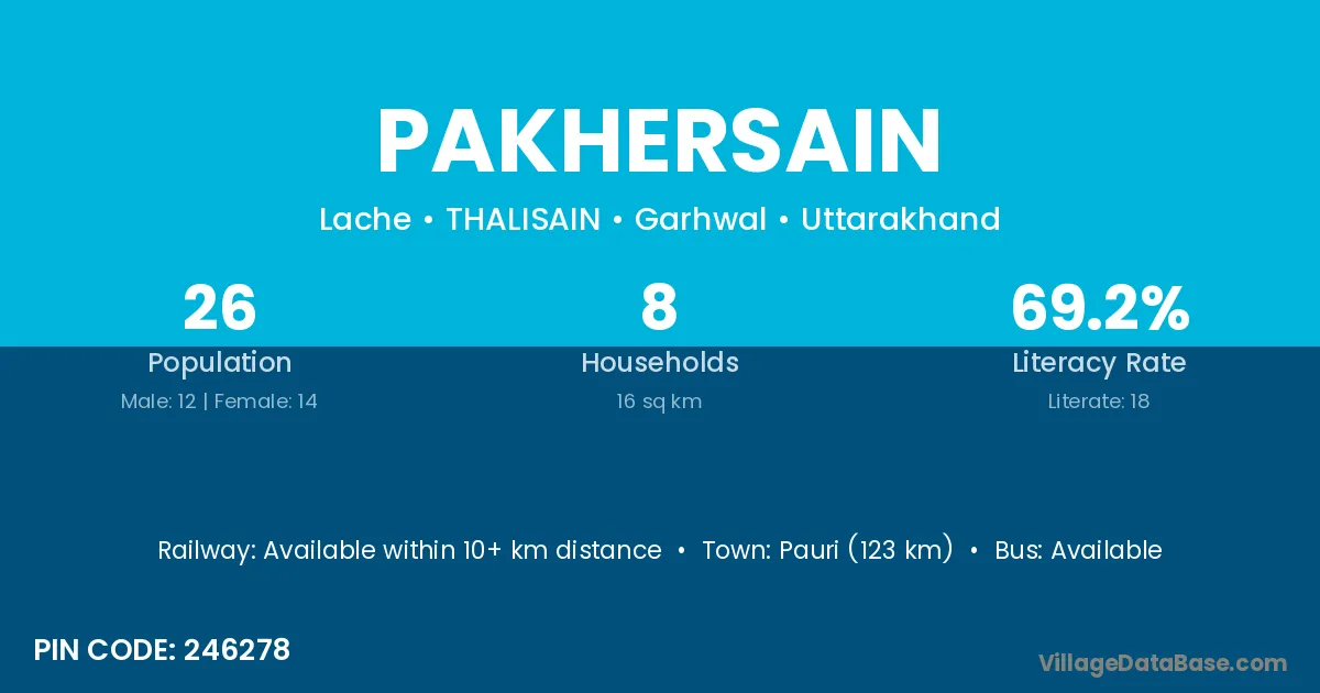 Pauri (123 km) is the nearest town to Pakhersain village for major economic activities and is located approximately 123 km away.