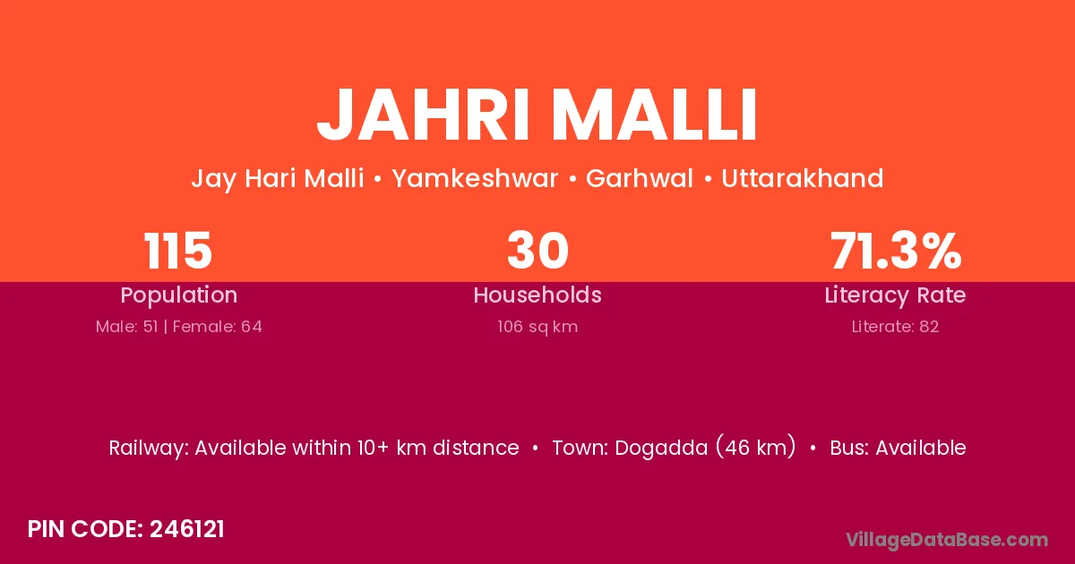According to Census 2011 information, the village code of Jahri Malli village is 246121.