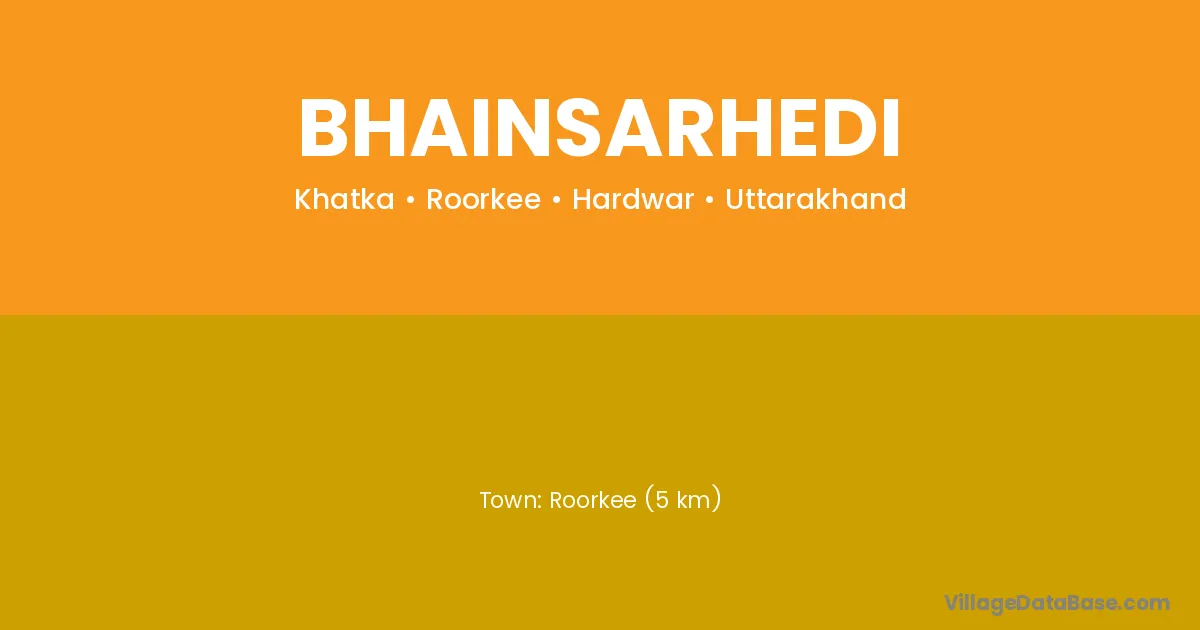 Roorkee (5 km) is the nearest town to Bhainsarhedi village for major economic activities and is located approximately 5 km away.