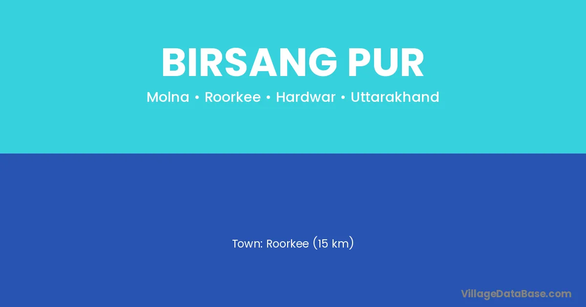 Roorkee (15 km) is the nearest town to Birsang Pur village for major economic activities and is located approximately 15 km away.