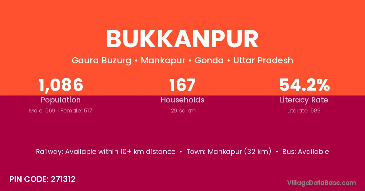 Bukkanpur village has a total population of 2,441 people, of which 1,300 are males and 1,141 are females.
