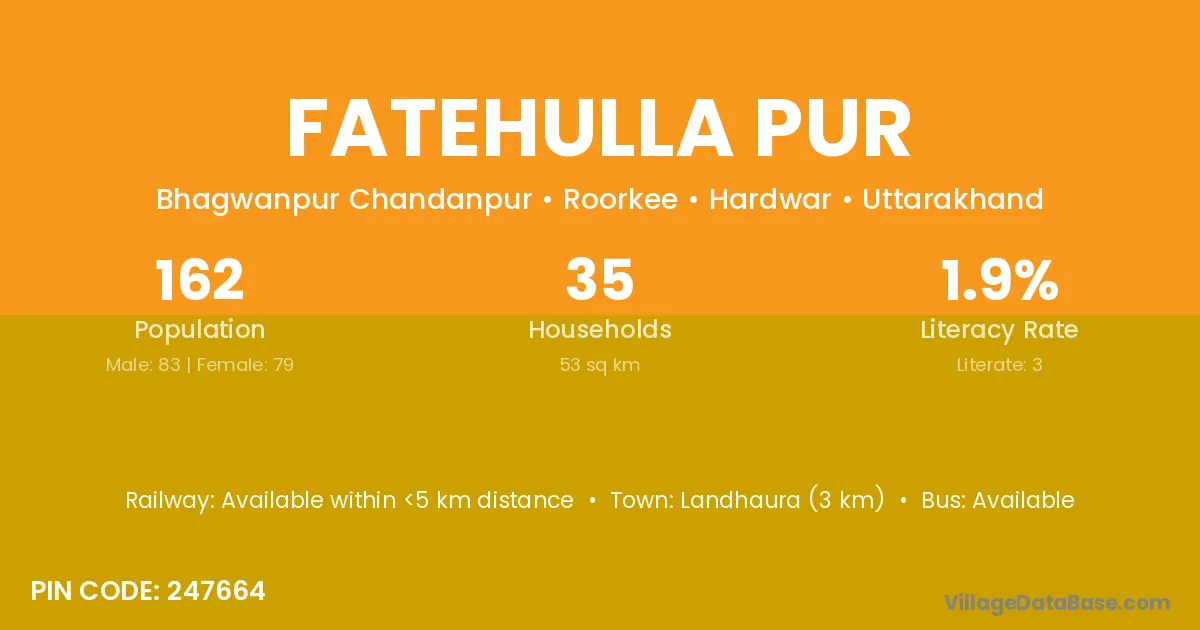 Fatehulla Pur village has a total population of 162 people, of which 83 are males and 79 are females.