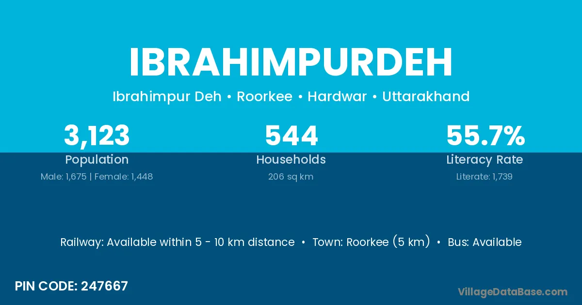 Roorkee (5 km) is the nearest town to Ibrahimpurdeh village for major economic activities and is located approximately 5 km away.