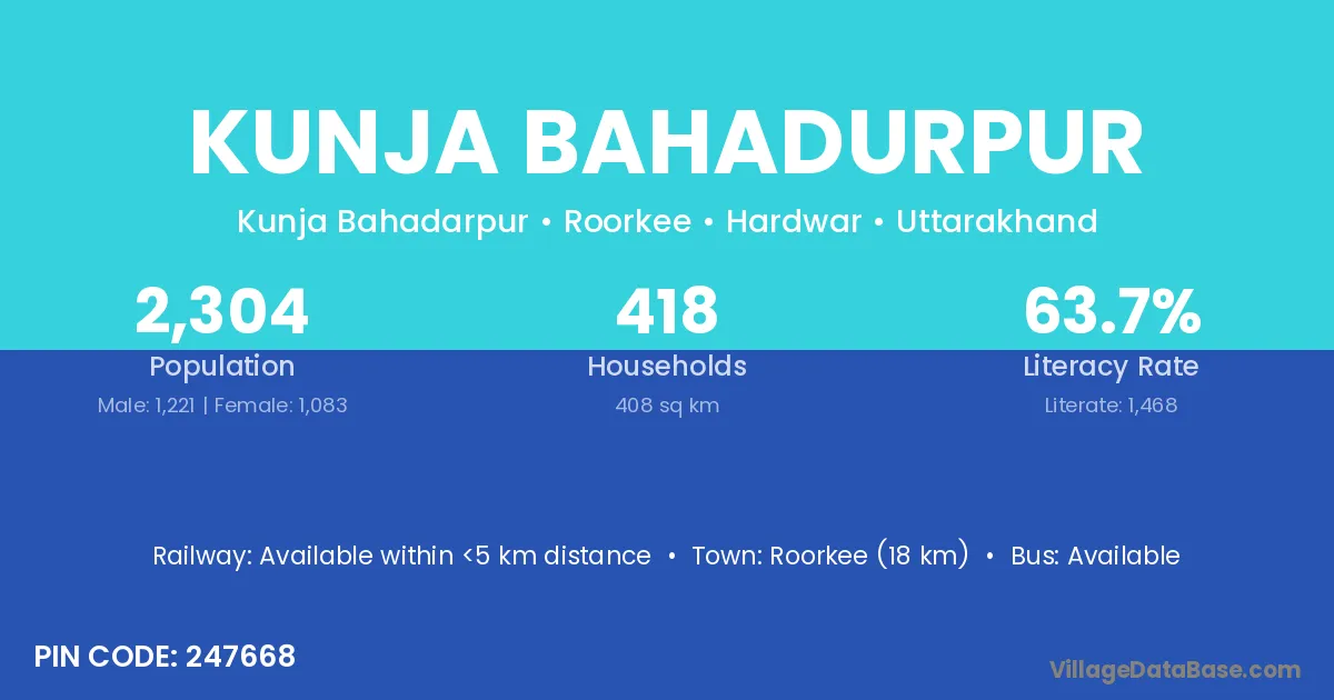 Roorkee (18 km) is the nearest town to Kunja Bahadurpur village for major economic activities and is located approximately 18 km away.