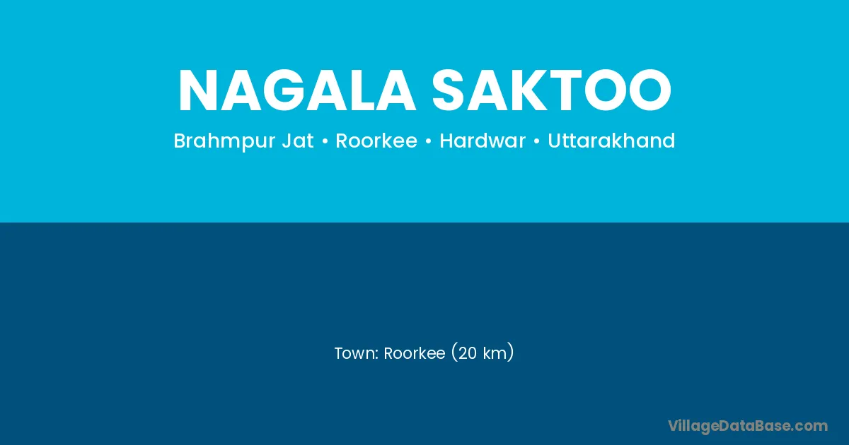 Roorkee (20 km) is the nearest town to Nagala Saktoo village for major economic activities and is located approximately 20 km away.