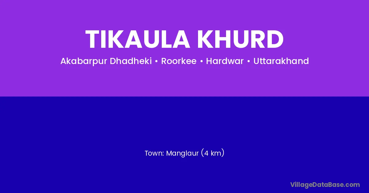 Manglaur (4 km) is the nearest town to Tikaula Khurd village for major economic activities and is located approximately 4 km away.