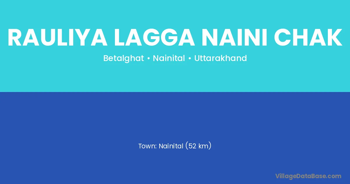 Nainital (52 km) is the nearest town to Rauliya Lagga Naini Chak village for major economic activities and is located approximately 52 km away.