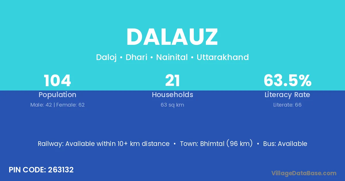 Bhimtal (96 km) is the nearest town to Dalauz village for major economic activities and is located approximately 96 km away.