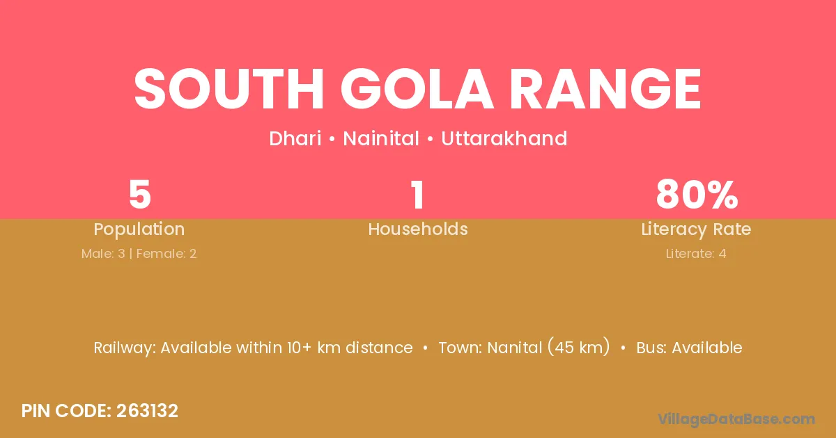 Nanital (45 km) is the nearest town to South Gola Range village for major economic activities and is located approximately 45 km away.