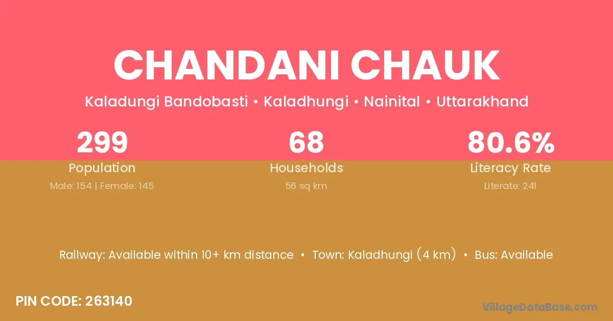 Kaladhungi (4 km) is the nearest town to Chandani Chauk village for major economic activities and is located approximately 4 km away.