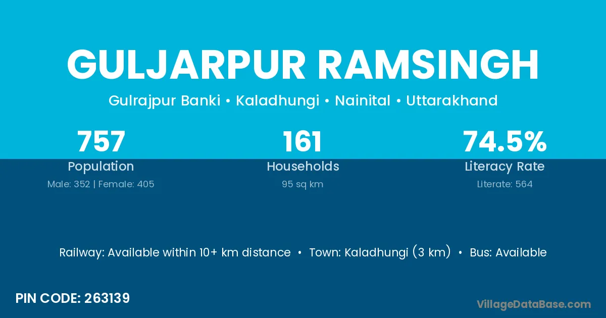 Kaladhungi (3 km) is the nearest town to Guljarpur Ramsingh village for major economic activities and is located approximately 3 km away.