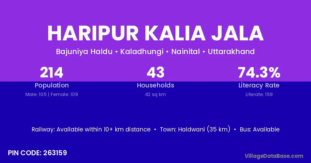 Haldwani (35 km) is the nearest town to Haripur Kalia Jala village for major economic activities and is located approximately 35 km away.