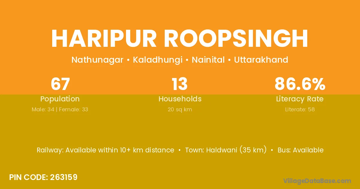 Haldwani (35 km) is the nearest town to Haripur Roopsingh village for major economic activities and is located approximately 35 km away.