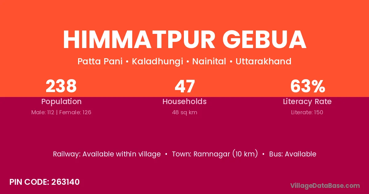 Ramnagar (10 km) is the nearest town to Himmatpur Gebua village for major economic activities and is located approximately 10 km away.