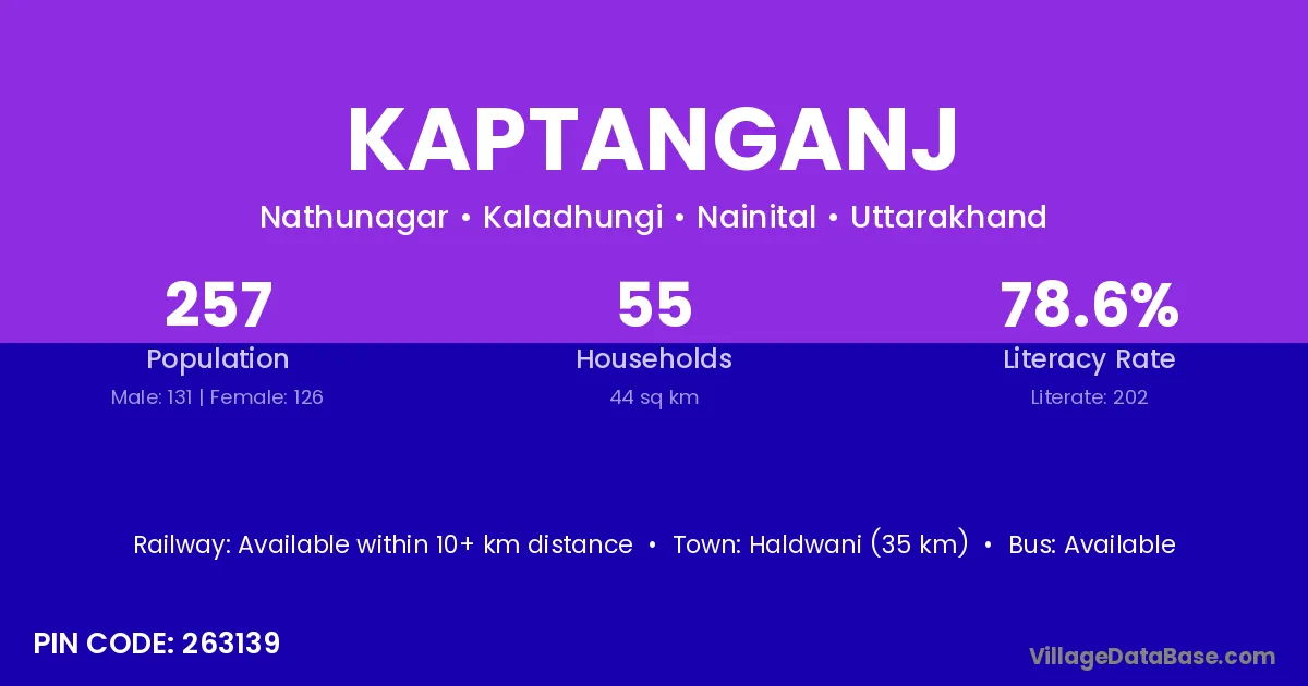 Kaptanganj village has a total population of 257 people, of which 131 are males and 126 are females.