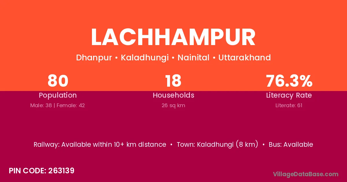 Kaladhungi (8 km) is the nearest town to Lachhampur village for major economic activities and is located approximately 8 km away.