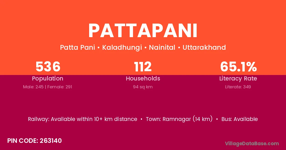 Ramnagar (14 km) is the nearest town to Pattapani village for major economic activities and is located approximately 14 km away.